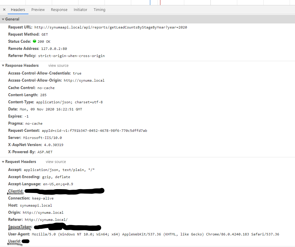 Below is a snapshot of the request once authenticated in Synuma and where you can extract the values.
