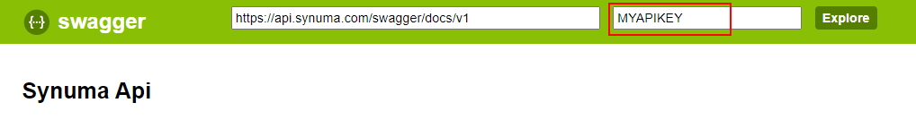The Swagger UI makes it easy to use an API Key and try any of the API calls in the system. To apply an API Key to all your requests, just paste it in the "api_key" input field at the top of the page: